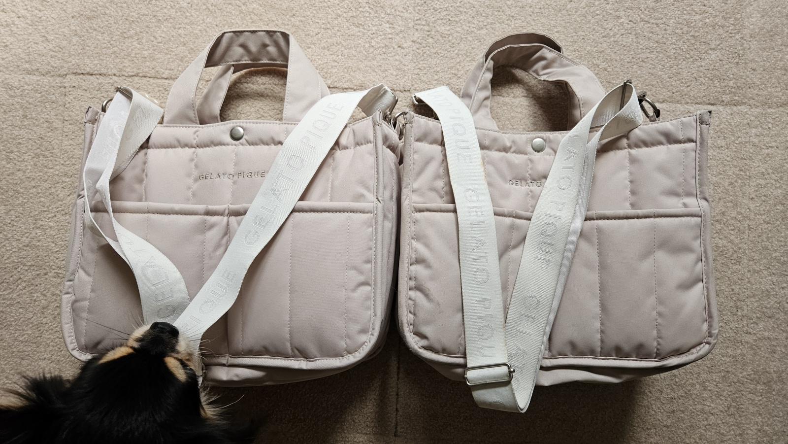 NEWお散歩バッグ 大好きなおともだちから数年前にプレゼントしてもらったお散歩バッグ。大のお気に入りでその日から毎日使い続け、、、写真では分からないけど、信じられないくらい汚れました笑そりゃあどこに行くのも一緒。くんちゃんと共に。だものね。途中洗ったりもしたけど、汚れ落ちず。可哀想な姿になってしまったので、新しくお迎えしました!全く一緒のもの。色も形も。お気に入り過ぎて。